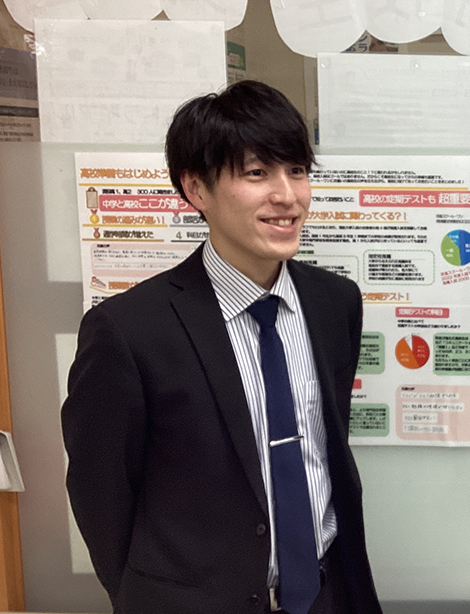 仕事をしている中で一番の宝物は、生徒の“笑顔”です。小中学生を対象に授業・進路指導などの業務を行っていますが、生徒の笑顔を見るために、生徒ひとりひとりのことを知り、理解し、そして変化に気づけるように行動することを日々心がけています。小中学生が、様々なことを我慢し目標に向かって挑戦をしている中で、志望校合格だけでなく、小さなことを成し遂げられた時にも見せてくれる“笑顔”は格別です。今後も、生徒たちが将来の目標を実現できるように、生徒たちと一緒に熱意をもって挑戦し続けます。